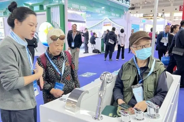 在老年人中,特别是失能失智的老人中,洗不上澡是“难以开口的秘密”,甚至有老人“三年没洗过一次澡”。洗澡过程中可能引起的血压问题、滑倒等隐患,成为老龄群体洗澡的阻碍。“这款水疗机还具备座椅加热、背部按摩等功能,设置辅助把手和防滑底部。”参展商在现场协助一名老龄市民进入水疗机体验,“我们还能按照用户需求定制,比如加装一键报警呼救系统,完善服务体验。”